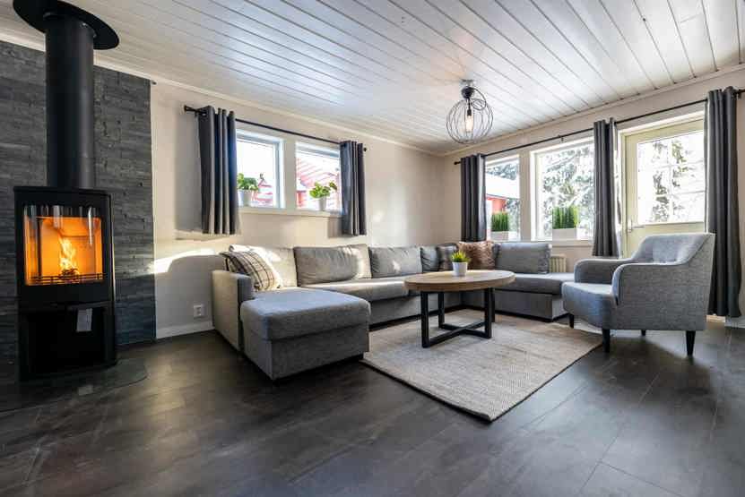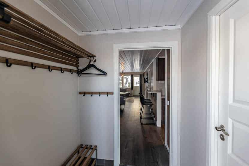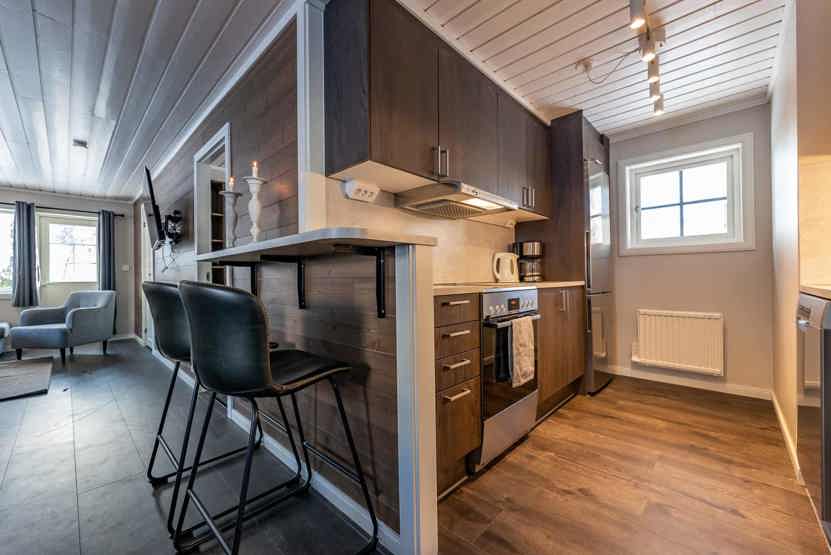Opholdsstue med køkkenafdeling. TV, brændeovn (brænde indgår ikke), altan (skovles ikke), tørreskab, rum til skiudstyr.