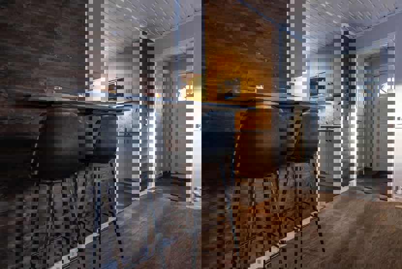 Opholdsstue med køkkenafdeling. TV, brændeovn (brænde indgår ikke), altan (skovles ikke), tørreskab, rum til skiudstyr.