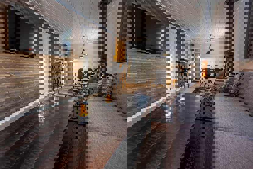 TV, brændeovn (brænde indgår ikke), altan (skovles ikke), tørreskab, rum til skiudstyr.