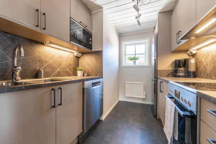 TV, brændeovn (brænde indgår ikke), balkon, tørreskab, rum til skiudstyr.