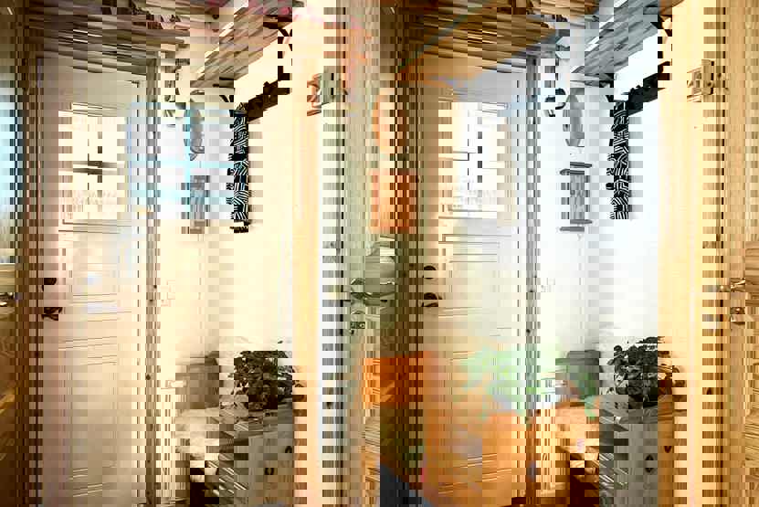 Køkkenet indeholder: keramiske kogeplader med ovn, køleskab, frys, opvaskemaskine, microovn.