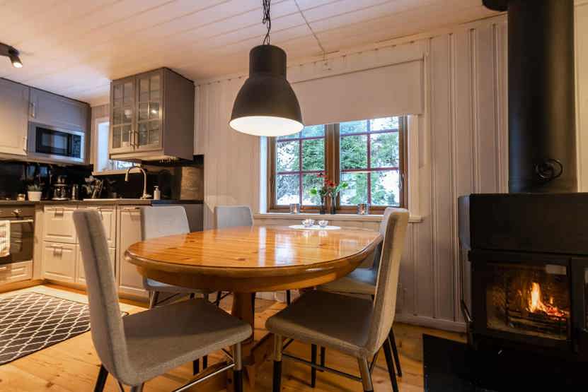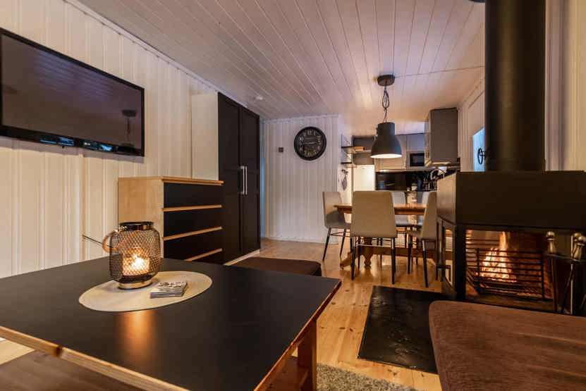 TV, brændeovn (brænde indgår ikke), tørreskab, rum til skiudstyr.