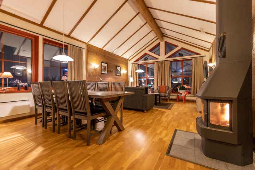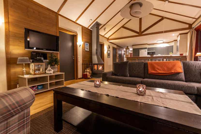 TV, brændeovn (brænde indgår ikke), skotører, vaskemaskine, tørreskab, 1 højstol, 1 barneseng, rum til skiudstyr, balkon, havem¢bler.