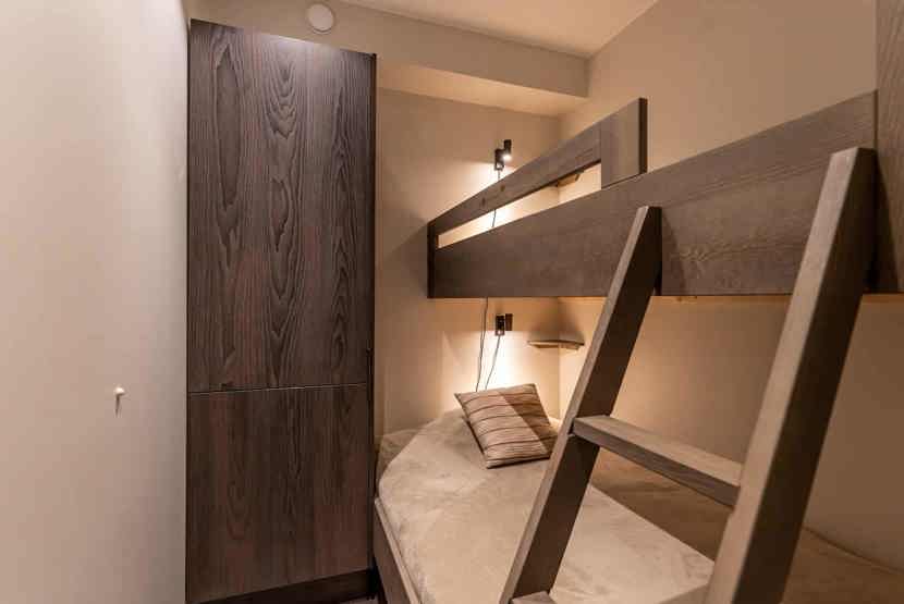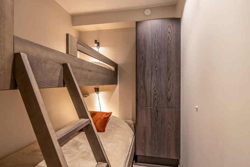 Soveværelse-2 (uden vindue)= 1 køjeseng med 120 cm bred underkøje . Soveværelse-3 (uden vindue)= 1 køjeseng med 120 cm bred underkøje .