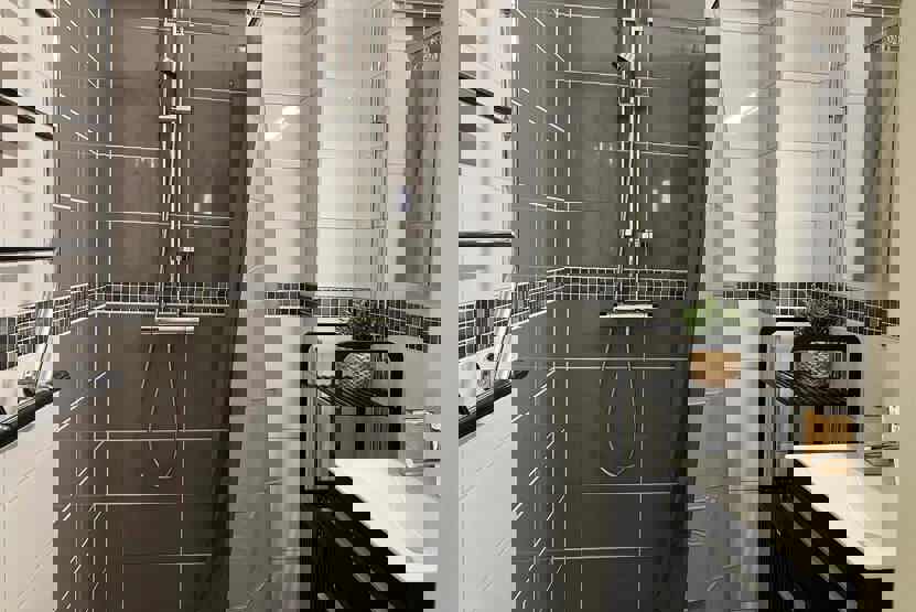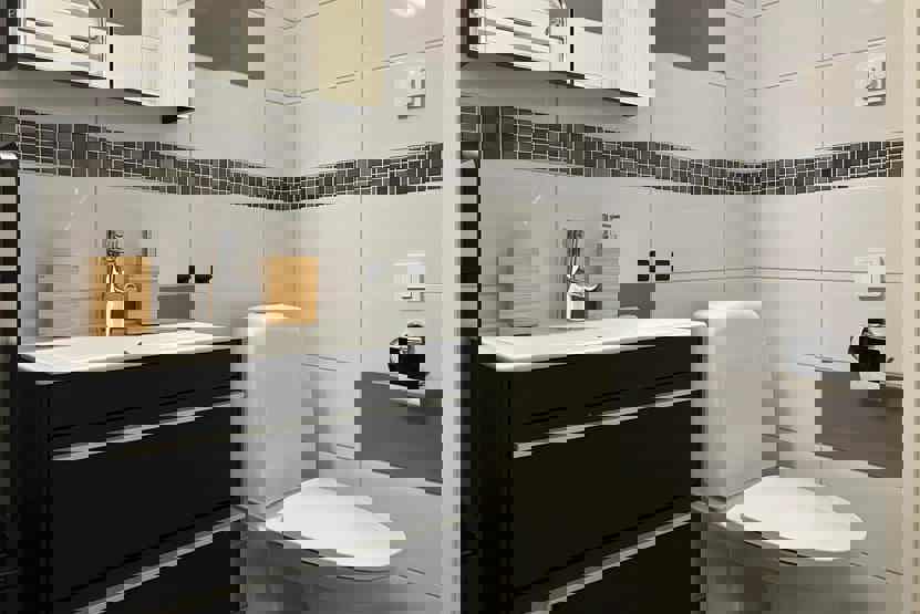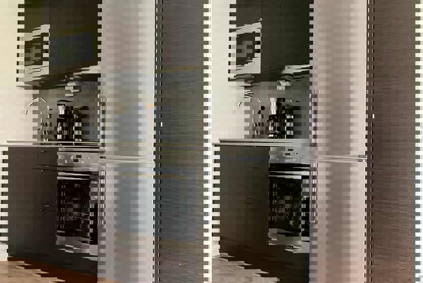 Køkkenet indeholder: Kogeplade med induktion, indbygningsovn, køl/frys, microovn.