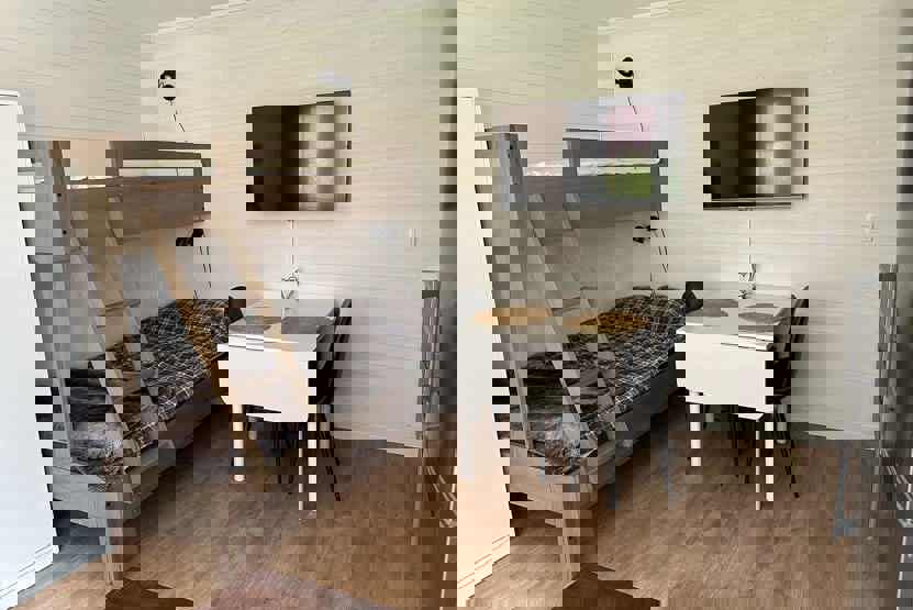 Opholdsstue med 1 køjeseng med 120 cm bred underkøje .