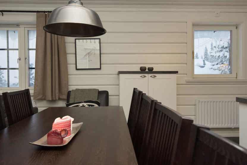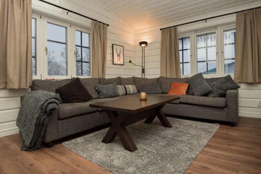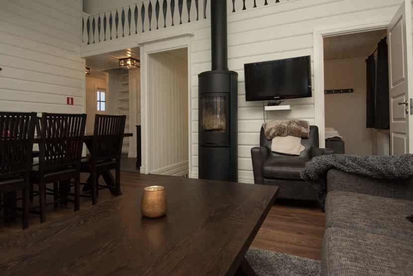 TV, brændeovn (brænde indgår ikke), tørreskab, rum til skiudstyr, altan (skovles ikke), brandtrappe til hems.
