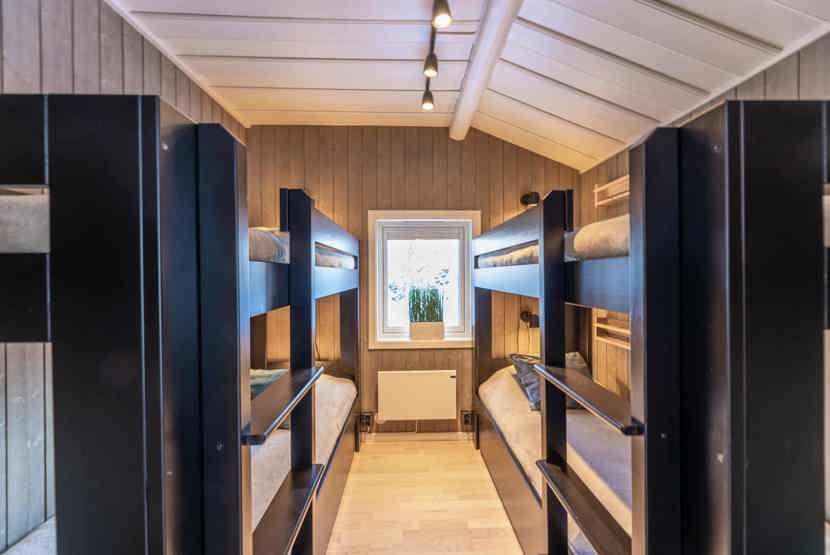 Soveværelse-1= 1 dobbeltseng 160 cm bred. Soveværelse-2= 2 køjesenge.
