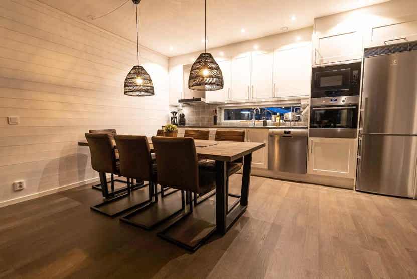 Køkkenet indeholder: keramiske kogeplader, indbygningsovn, køleskab, frys, opvaskemaskine, microovn.