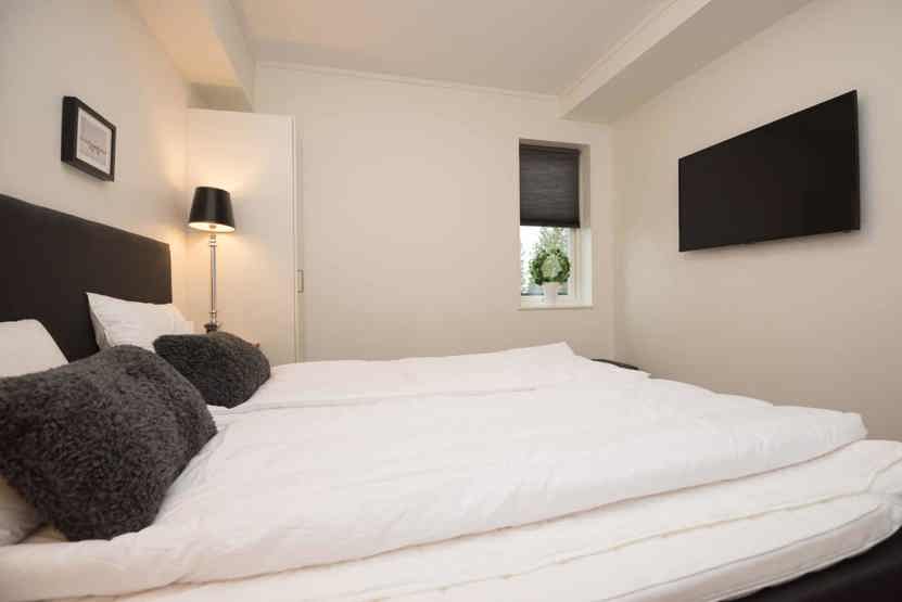 Soveværelse-1= 1 dobbeltseng. Soveværelse-2= 1 dobbeltseng. Soveværelse-3= 2 køjesenge 80 cm bred.