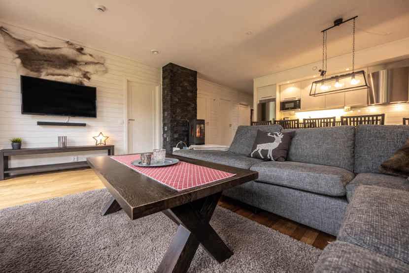 TV, brændeovn (brænde indgår ikke), vaskemaskine, tørreskab, balkon, havem¢bler, rum til skiudstyr, 1 parkeringsplads.