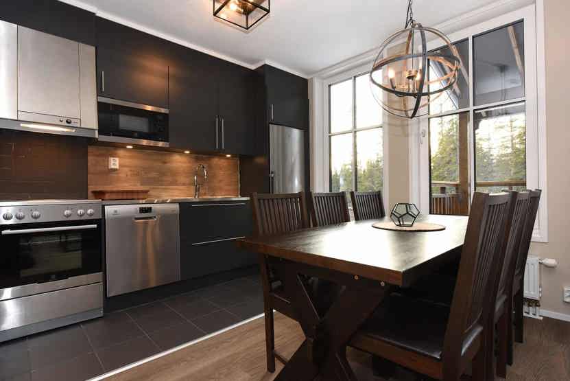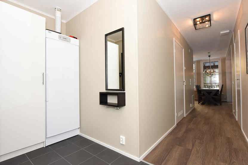 Køkkenet indeholder: elkomfur med ovn, køleskab, frys, opvaskemaskine, microovn.