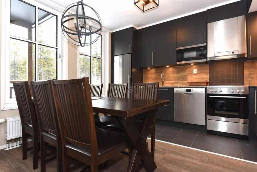 Køkkenet indeholder: elkomfur med ovn, køleskab, frys, opvaskemaskine, microovn.