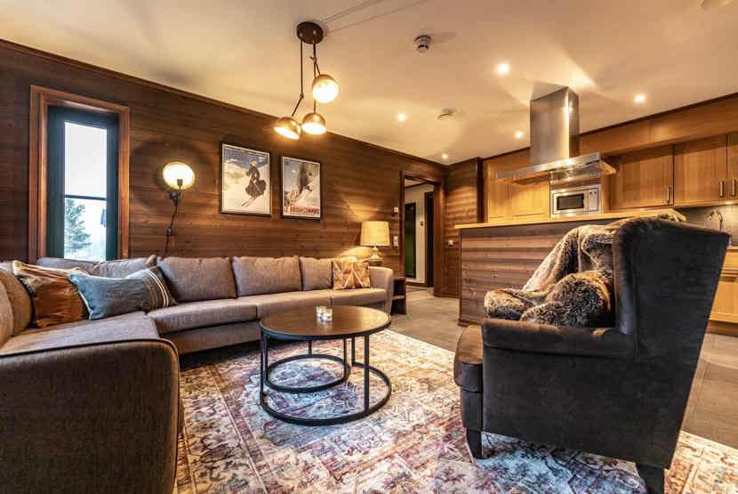 Ski Lodge Village ligger i Lindvallen. Stuelejlighed, 8 sengepladser, 87 m², alrum med køkkenafdeling, 4 soveværelser, 2 brusere, 2 WC, sauna.
