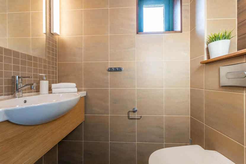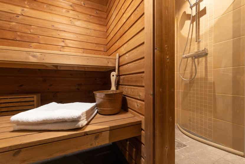 Badeværelset-1 = wc. Badeværelset-2 = 2 bruse, sauna. Badeværelset-3 = wc.