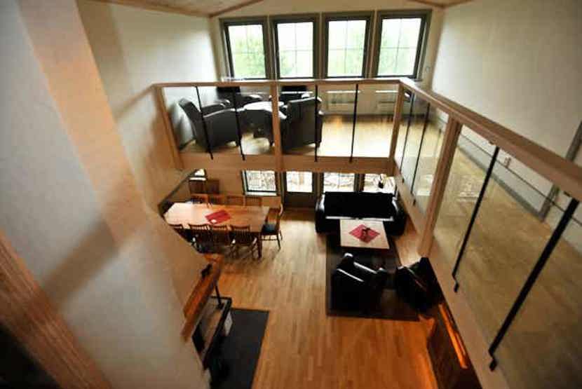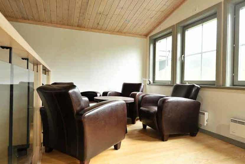 Opholdsstue med køkkenafdeling, og opholdsstue på øverste etage.