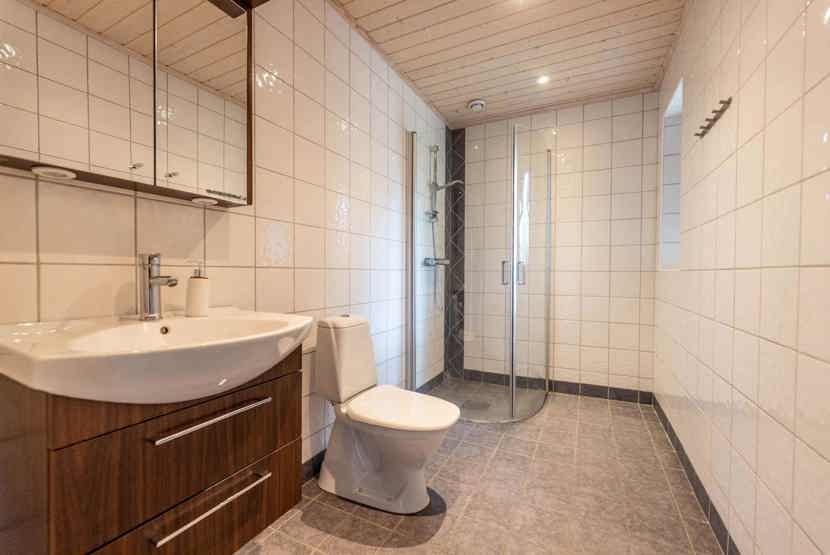 Badeværelset-1 = 1 bruse/wc. Badeværelset-2 = 1 bruse/wc. Badeværelset-3 = 1 bruse/sauna med relax.