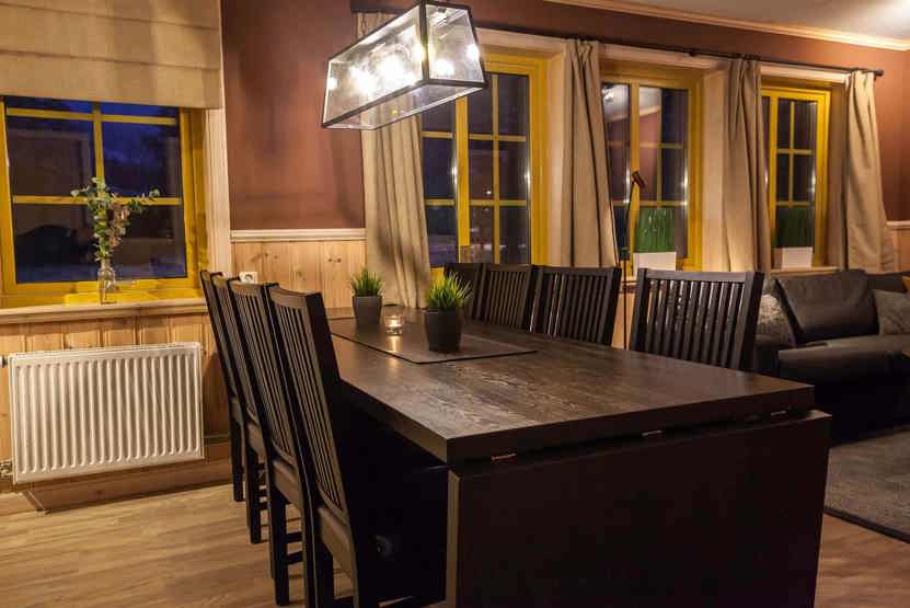 Opholdsstue med køkkenafdeling. TV, tørreskab, rum til skiudstyr.