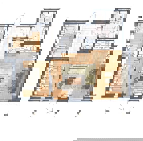 Badeværelset-1 = bruse/wc/sauna. Badeværelset-2 = bruse/wc.