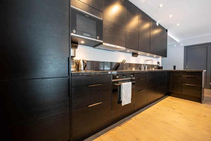 Køkkenet indeholder: keramiske kogeplader med ovn, køleskab, frys, opvaskemaskine, microovn.