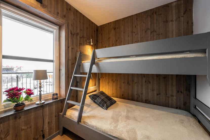 Soveværelse-1= 1 dobbeltseng 180 cm bred. Soveværelse-2= 1 køyeseng med 120 cm bred underkøye og 80 cm bred overkøye. Soveværelse-3= 1 køyeseng med 120 cm bred underkøye og 80 cm bred overkøye.