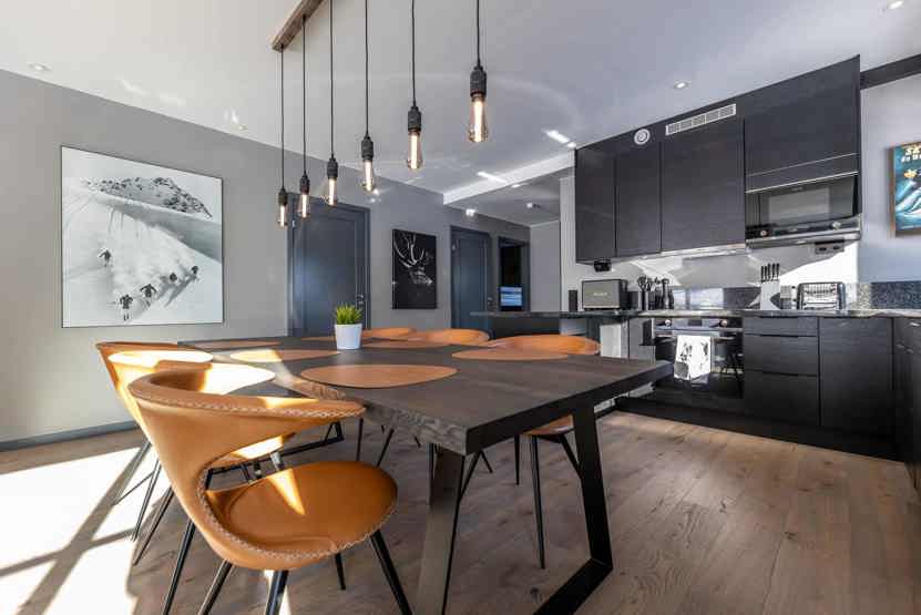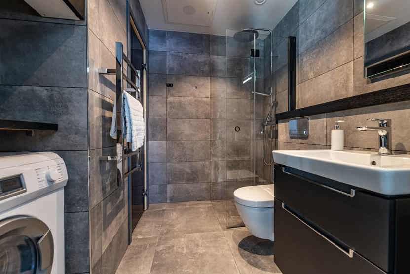 TV, brændeovn (brænde indgår ikke), tørreskab, kombineret vaskemaskine/tørretumbler, rum til skiudstyr, balkon, elevator findes i huset, 1 parkeringsplads, adgang til elbilopladere med type 2 stik mod betaling.