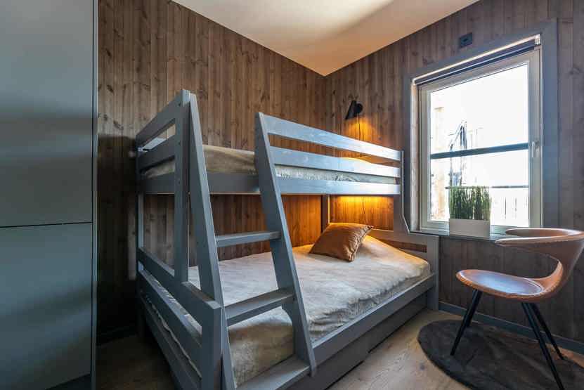 Soveværelse-1= 1 dobbeltseng. Soveværelse-2= 1 køjeseng med 120 cm bred underkøje . Soveværelse-3= 1 køjeseng med 120 cm bred underkøje .