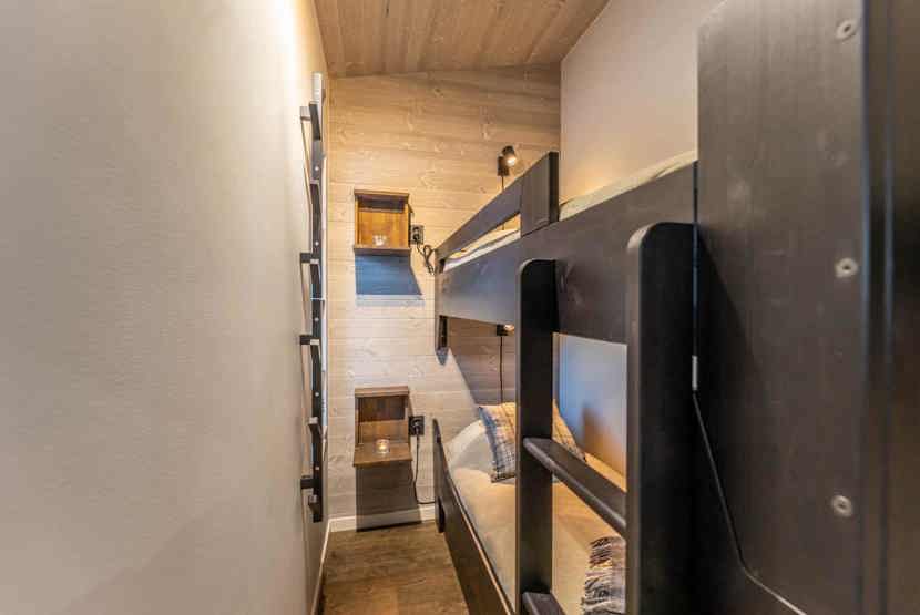 Soveværelse-1= 1 dobbeltseng 160 cm bred. Soveværelse-2= 1 køyeseng med 120 cm bred underkøye og 80 cm bred overkøye. Soveværelse-3= 1 køjeseng.