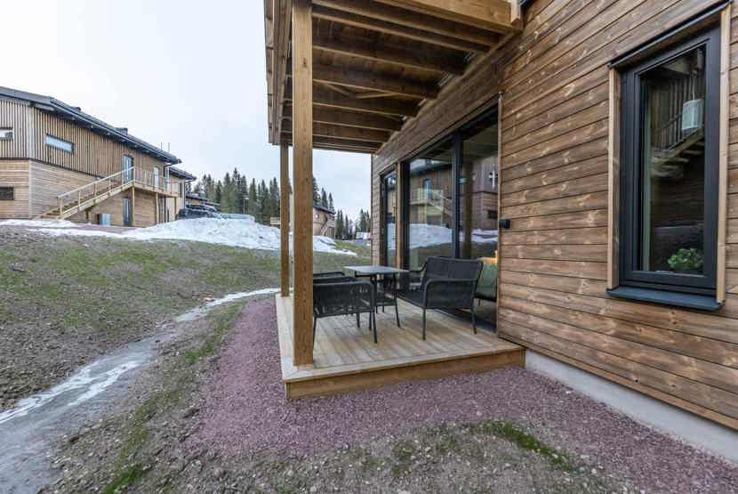 Timmerby Village ligger i Lindvallen. Lejlighed i stueetagen, 6 sengepladser, 65 m², alrum med køkkenafdeling, 3 soveværelser, 2 brusere, 2 WC, sauna.