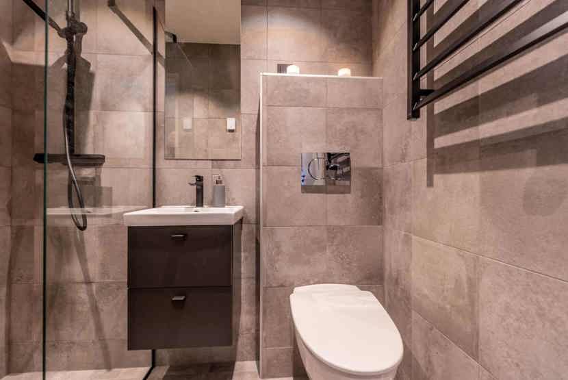 Badeværelset-1 = bruse/wc/sauna. Badeværelset-2 = bruse/wc.