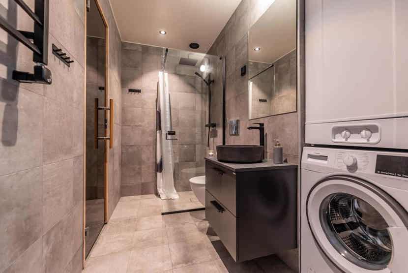 Badeværelset-1 = bruse/wc/sauna. Badeværelset-2 = bruse/wc.