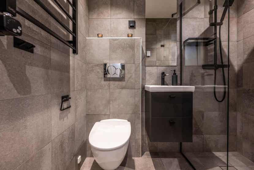 Badeværelset-1 = bruse/wc/sauna. Badeværelset-2 = bruse/wc.