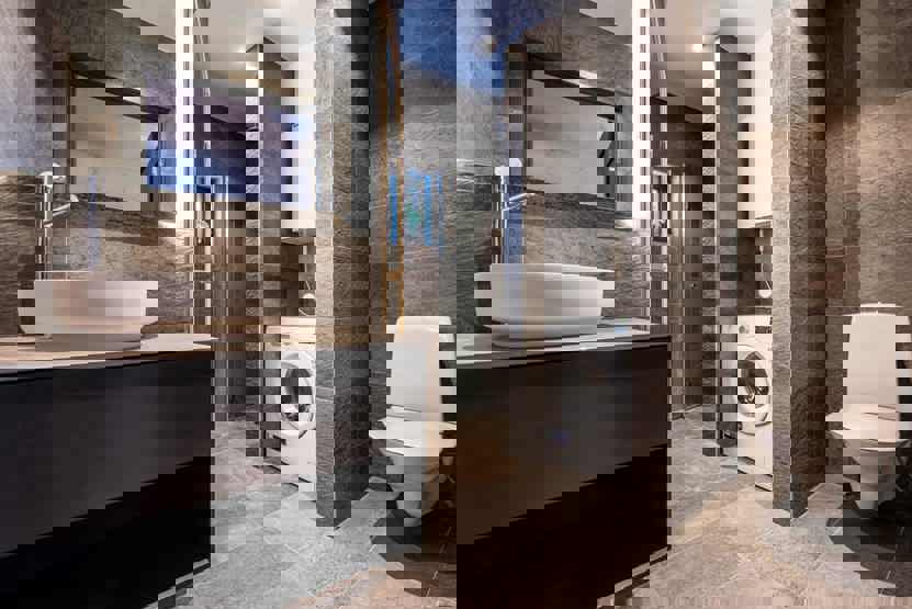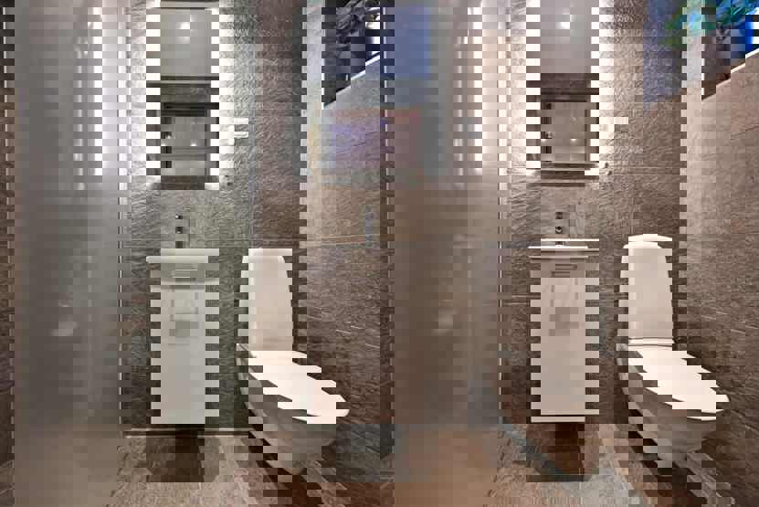 Badeværelset-1 = bruse/wc/sauna. Badeværelset-2 = bruse/wc.