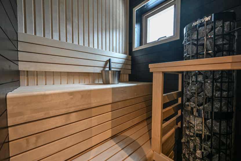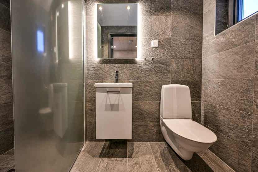 Badeværelset-1 = bruse/wc/sauna. Badeværelset-2 = bruse/wc.