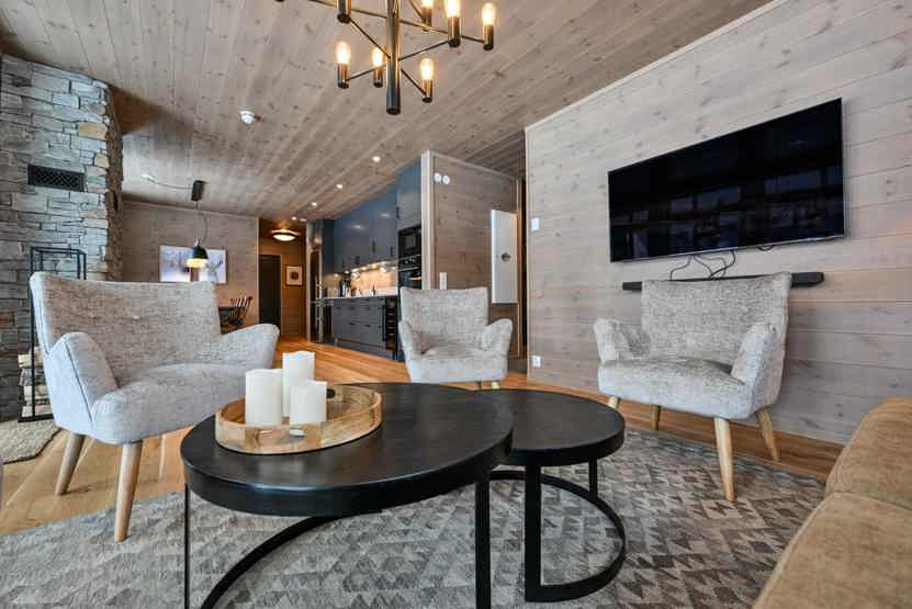 TV, brændeovn (brænde indgår ikke), tørreskab, kombineret vaskemaskine/tørretumbler, 1 højstol, altan (skovles ikke), rum til skiudstyr, 2 parkeringspladser, adgang til elbilopladere med type 2 stik mod betaling.