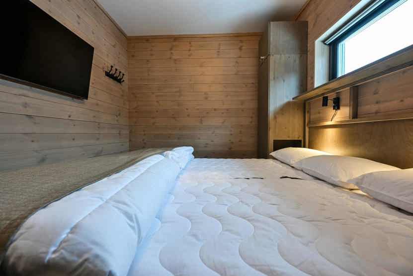 Soveværelse-1= 1 dobbeltseng 180 cm bred. Soveværelse-2= 1 dobbeltseng 180 cm bred. Soveværelse-3= 1 køyeseng med 120 cm bred underkøye og 80 cm bred overkøye. Soveværelse-4= 1 køyeseng med 120 cm bred underkøye og 80 cm bred overkøye.
