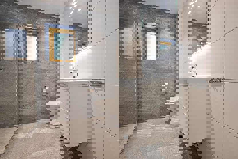 Badeværelset-1 = bruse/wc/sauna. Badeværelset-2 = bruse/wc. Badeværelset-3 = wc.