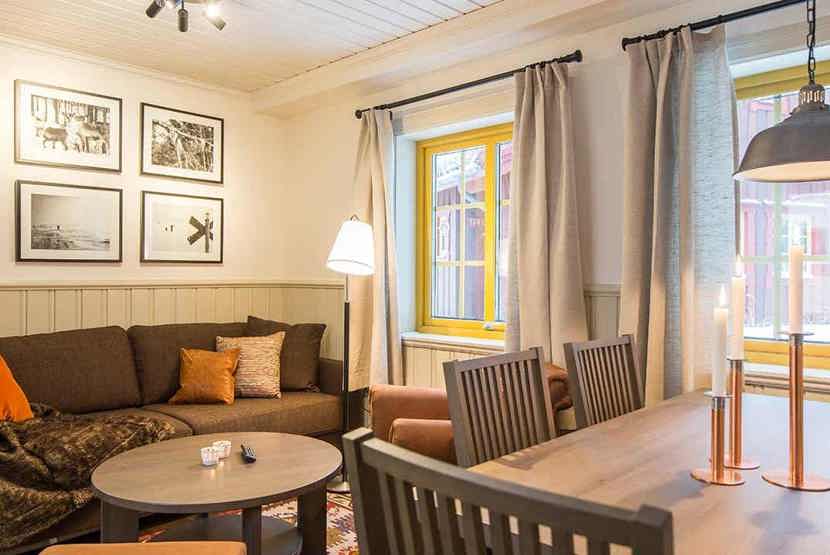 Timmerbyn ligger i Lindvallen. Lejlighed, 4+1 sengepladser, 46 m², alrum med køkkenafdeling, 2 soveværelser, 1 bruser, 1 WC, sauna.