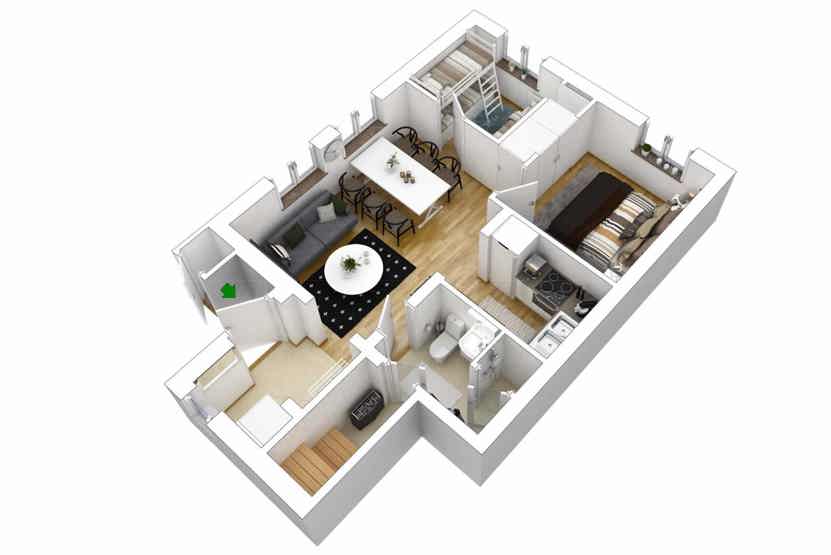Timmerbyn ligger i Lindvallen. Lejlighed, 4+1 sengepladser, 46 m², alrum med køkkenafdeling, 2 soveværelser, 1 bruser, 1 WC, sauna.