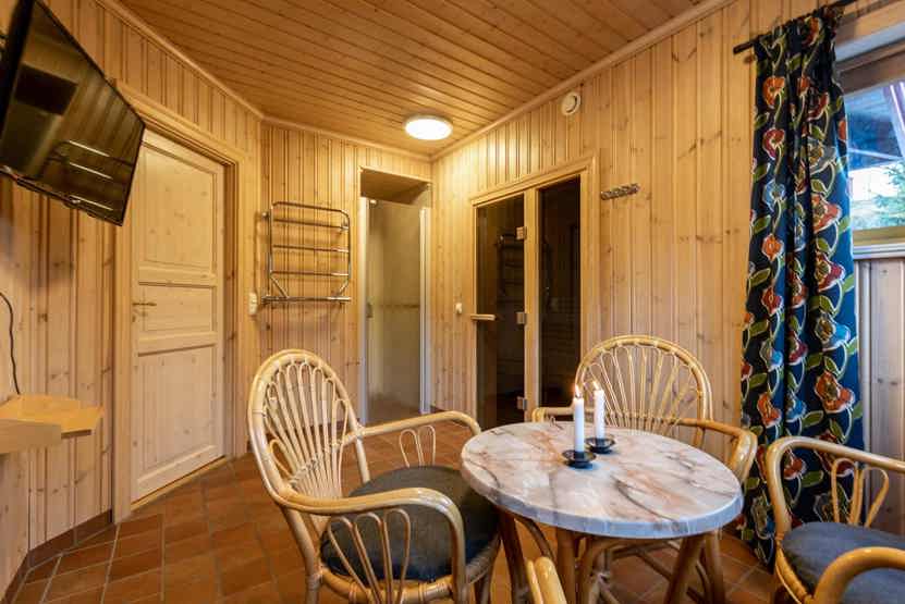 Badeværelset-1 = afslapningsrum med sauna, wc og 2 x bruse. Badeværelset-2 = wc. Badeværelset-3 = wc. Badeværelset-4 = bruse/wc.