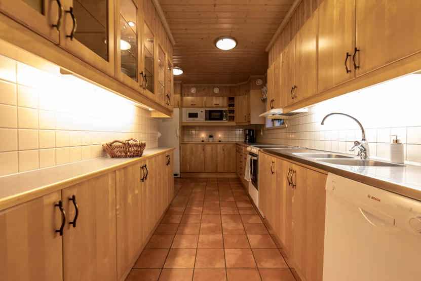 TV, åben pejs (brænde indgår ikke), vaskemaskine, tørretumbler, 2 tørreskab, altan (skovles ikke), rum til skiudstyr, 1 højstol, 1 barneseng.