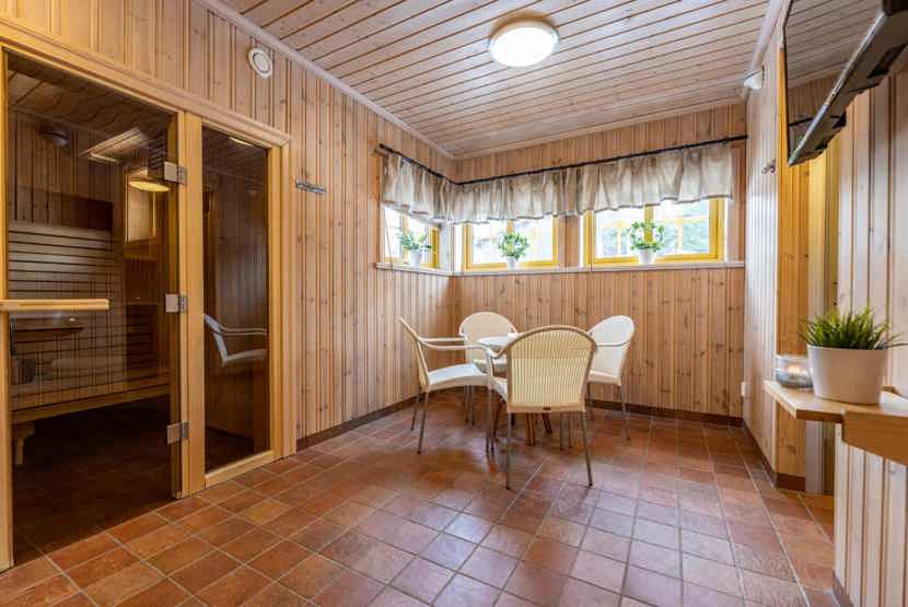 Badeværelset-1 = afslapningsrum med sauna, wc og 2 x bruse. Badeværelset-2 = wc. Badeværelset-3 = wc. Badeværelset-4 = bruse/wc.