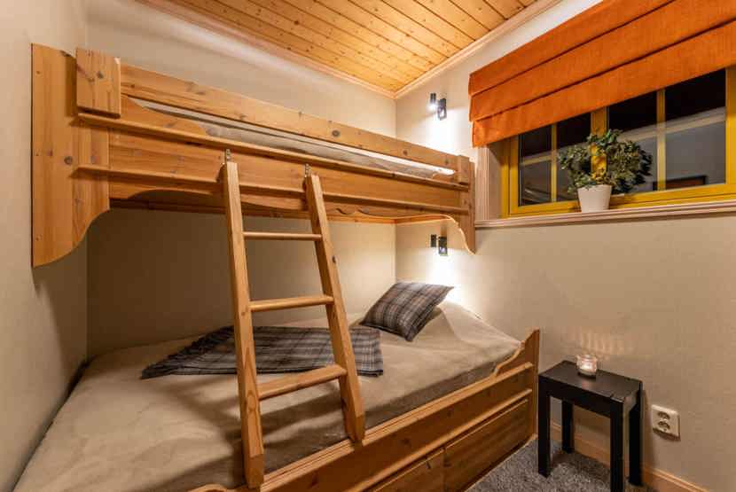 Soveværelse-1= 1 dobbeltseng. Soveværelse-2= 1 køjeseng. Soveværelse-3= 1 køjeseng. Soveværelse-4= 1 køjeseng, 1 køjeseng.