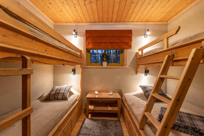 Soveværelse-1= 1 dobbeltseng. Soveværelse-2= 1 køjeseng. Soveværelse-3= 1 køjeseng. Soveværelse-4= 1 køjeseng, 1 køjeseng.