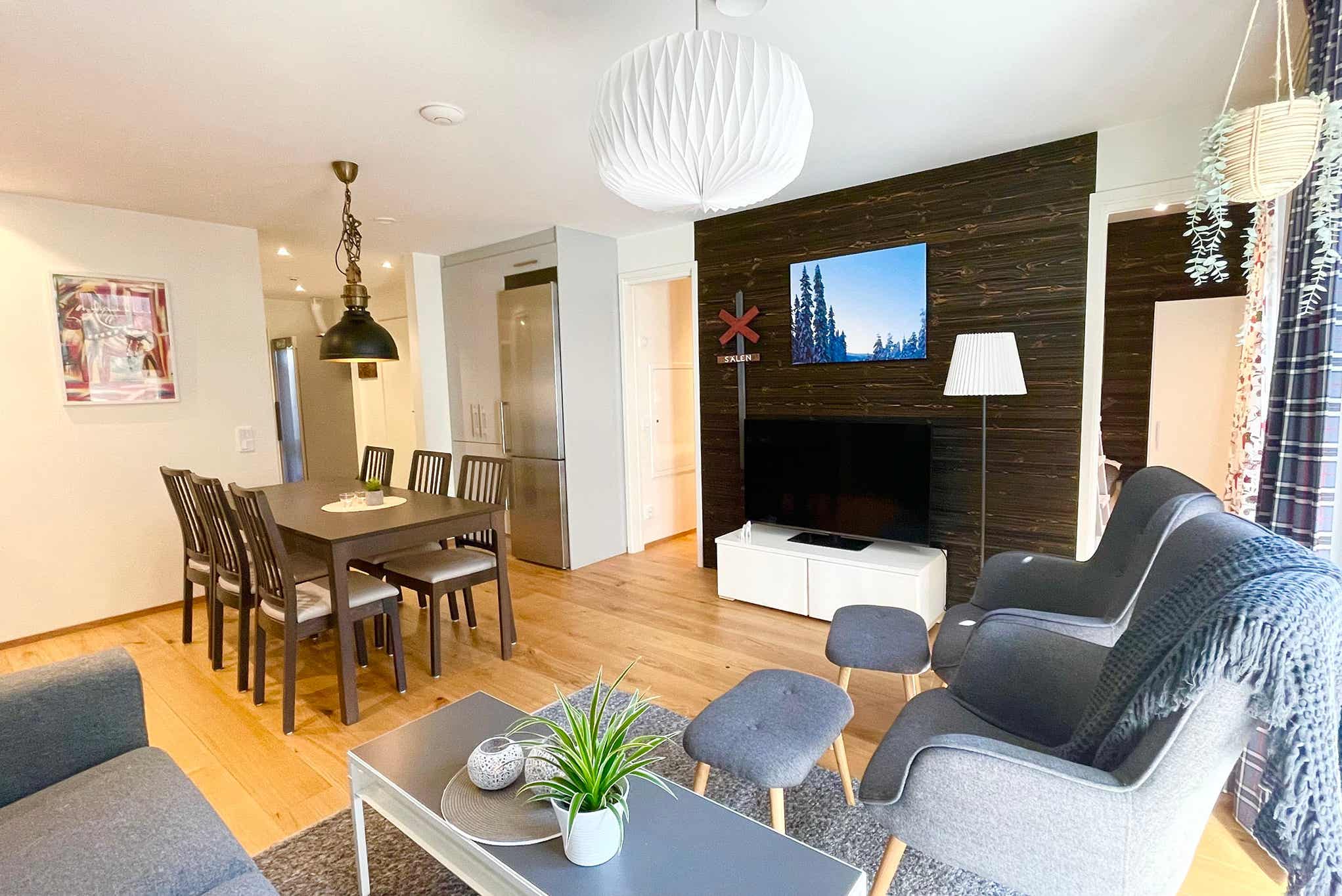 Hyggelige lejligheder lige ved Sälfjällstorget med restauranter, Skistarshop Concept Store og gåafstand til skiløb.