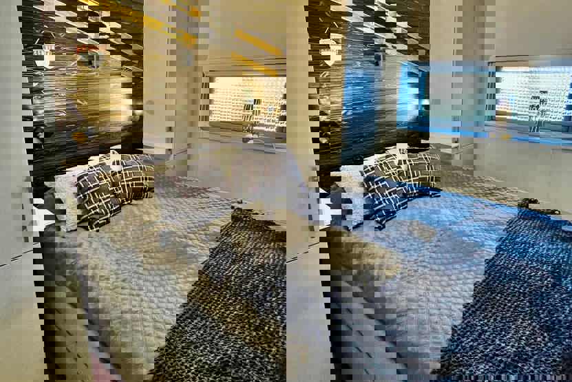 Soveværelse-1= 1 dobbeltseng 180 cm bred. Soveværelse-2= 1 køjeseng med 105 cm bred underkøje . Soveværelse-3= 1 køjeseng med 105 cm bred underkøje . Soveværelse-3 (uden vindue)= 1 køjeseng.