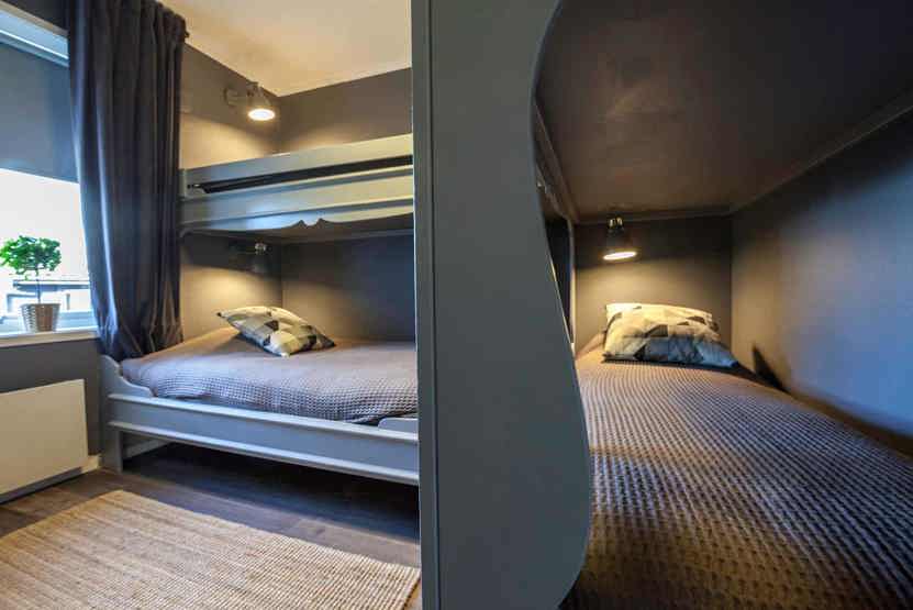 Soveværelse-1= 1 dobbeltseng. Soveværelse-2= 1 dobbeltseng. Soveværelse-3= 1 køjeseng, 1 køjeseng.