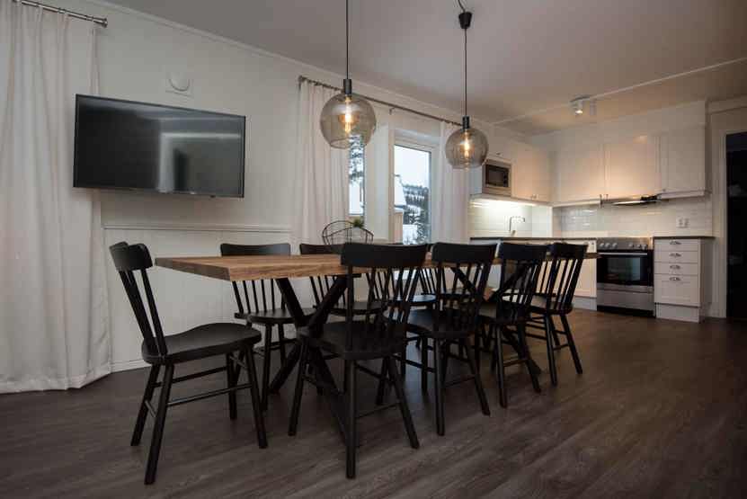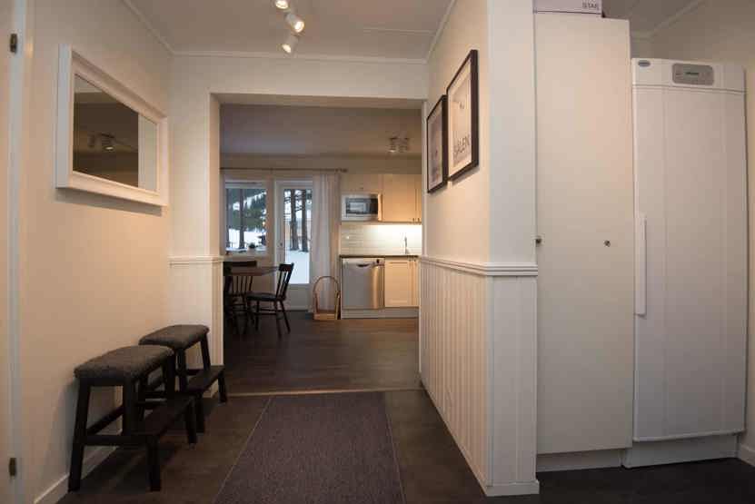 Opholdsstue med køkkenafdeling. TV, tørreskab, rum til skiudstyr.