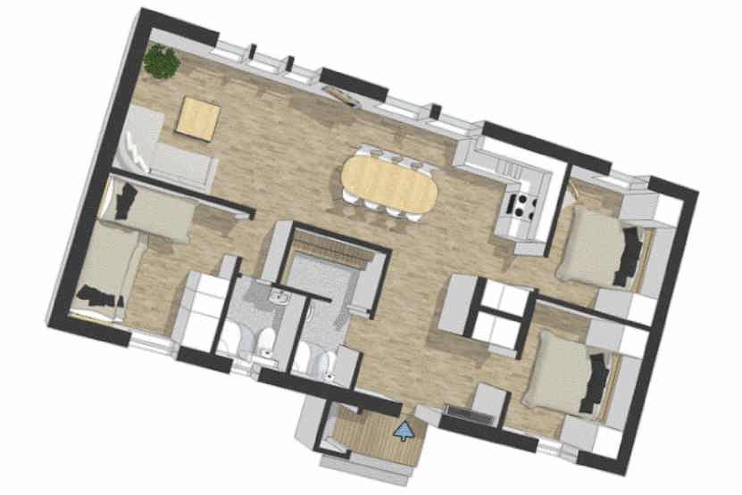 Opholdsstue med køkkenafdeling.