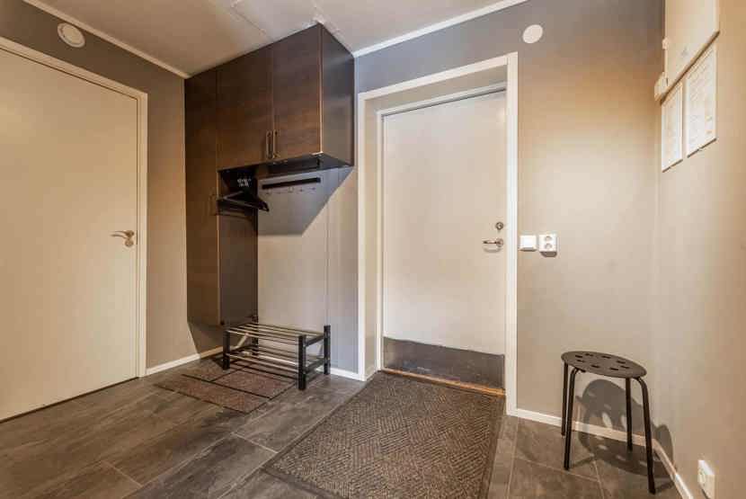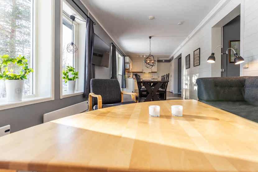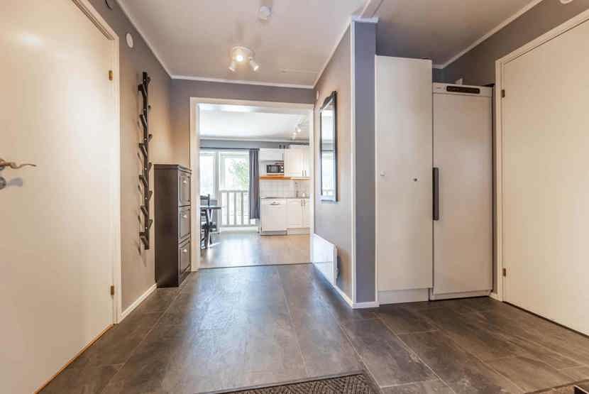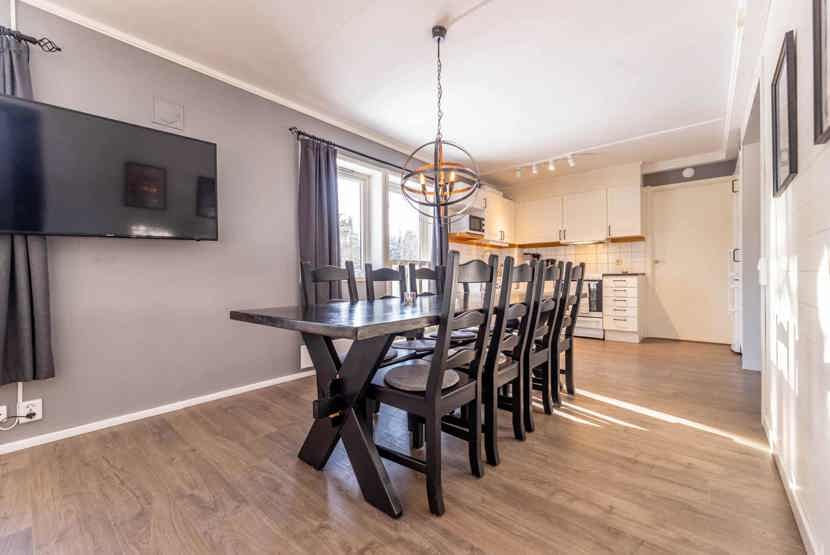 Opholdsstue med køkkenafdeling. TV, tørreskab, rum til skiudstyr.